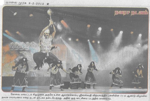 The Chief Guest in his speech said, “The western countries turn to our country and try to learn our traditional ways of living and India would lead the world shortly. There was a scintillating dance drama show ‘NAVARASA RAMAYAN’ presented by 715 students depicting the various heroic events with nine different emotion observed in the epic ‘The Ramayana’. Mrs. I. Shantha Kumari, Senior Secondary Principal proposed a vote of thanks followed by National Anthem.