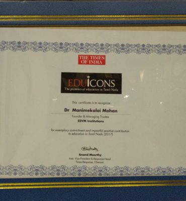 EduIcons Award – 2016, The Pioneers of Education in Tamil Nadu – Best Entrepreneur and Educationist 17th March 2016