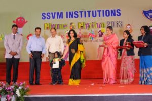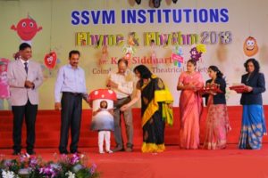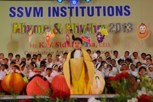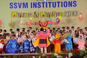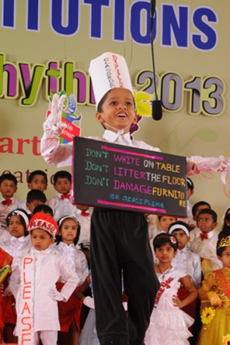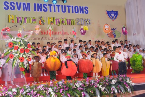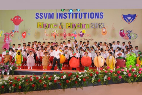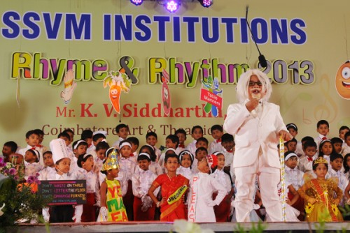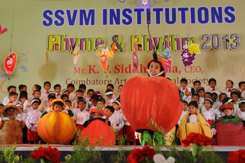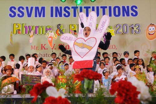 The Rhyme & Rhythm was conducted on 20 November, 2013. The dignitaries present were Dr. Manimekalai Mohan, the Managing Trustee and Correspondent, Mr. S. Mohan Doss, the Trustee and Secretary, the Chief Guest Mr. K.V. Siddartha CEO, Coimbatore Art and Theatrical Society. The kids with their observant attire represented healthy veggies, juicy fruits and Mr.Manners matters. They created an alluring attraction while explaining about punctuality, enthusiasm, self grooming, thanks giving attitude etc. Finally the Chief Guest distributed certificates and medals to participants and winners.