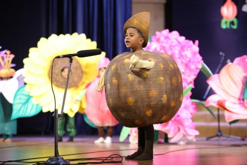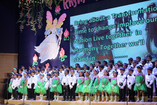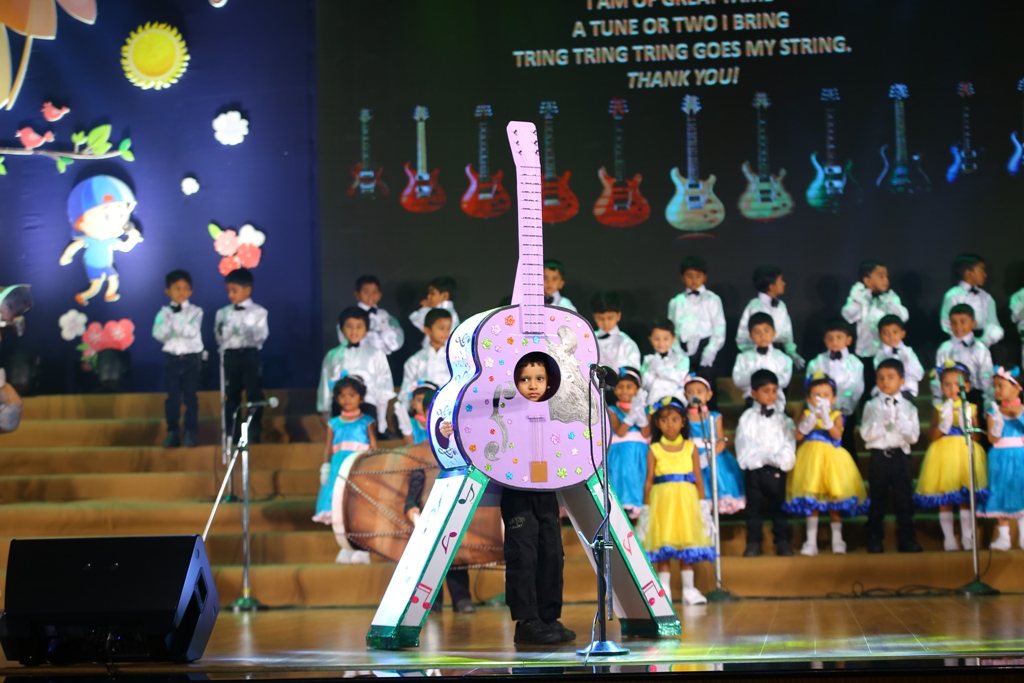 Mr. S. Mohan Doss, the Trustee and secretary felicitated the Chief Guest. The concept for the event was “Transformation”. LKG kids disguised as ‘Flowers’ and ‘Veggies’ where as UKG children appeared as’ Fairy Stars’ like Cinderella, Snow white, Goldilocks and Fruits. Each child delivered a message like ‘Save Water, be neat and tidy, be punctual, Unity is strength etc., Our UKG children bagged the Overall Trophy for the best attire and N. Sri Yaalini bagged the best soloist award for performing prayer song and closing song.