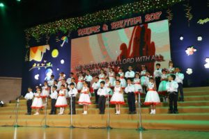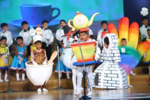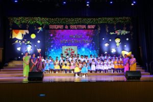 It was held on 5 August, 2017 at MOSRIMAA CONVENTION CENTRE, SSVM World School, Coimbatore. Dr. Vasanthi Thiagarajan, the Correspondent and Principal , Sishya School, Hosur was the Chief Guest. The concept for the competition was “Positive Thinking”. LKG kids disguised as Musical Instruments and seasons, and UKG children appeared as Singers and Birds. Children were adjudged based on different criteria like appealing attire, distinct expression, best cadence and impressive performance. Our children bagged the Overall Championship for “The best Attire”, and baby Mruthanyaa.B of LKG bagged the ‘Best Soloist’ award.