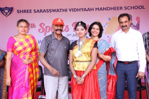 The 14th Sports Day was celebrated with great exuberance on 25 July, 2014. Walter I. Davaram. I.P.S. the Former Director General of police, Tamil Nadu and the President, Tamil Nadu Athletic Association was the Chief Guest. The elegant Brass Band group invited the dignitary who was escorted by the Managing Trustee and Correspondent, Dr. Manimekalai Mohan and the Trustee and Secretary, Mr. S. Mohan Doss. Mrs. A. Suguna Devi, Senior Principal welcomed the gathering. The chief Guest accepted the guard of honour from the saluting dais.