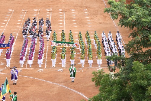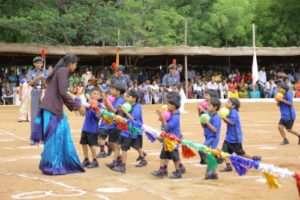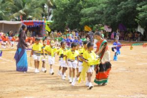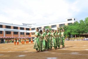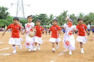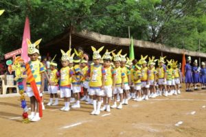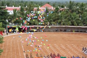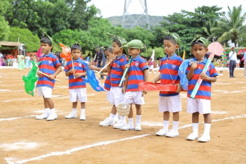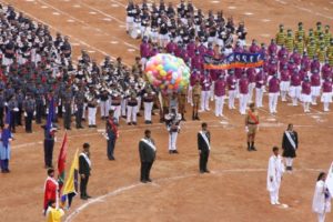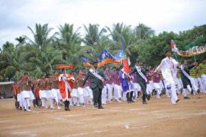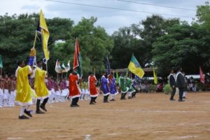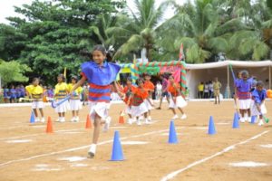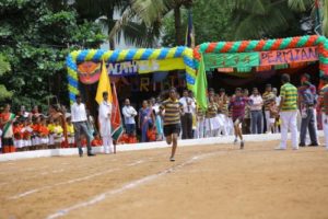 Then the entire ground turned into a riot of colours with children who performed Athletic events, warming up drill, Double Pole drill, Hip-Hop drill, Concept dance and Mime. The Chief Guest in his speech said that apart from education extraordinary importance should be given to sports. “Sound Mind in Sound Body is the basic saying to be cherished,” he said. “All should practice any one of their favourite games throughout their lives to excel in all walks of life,” he added.
