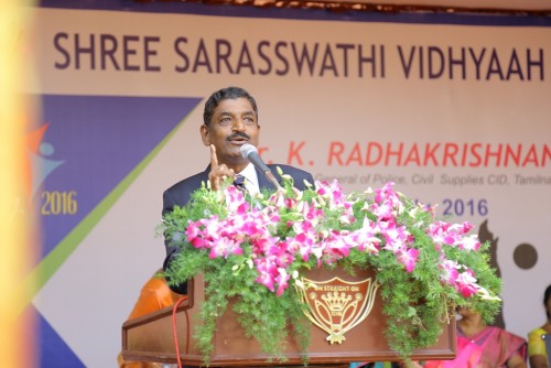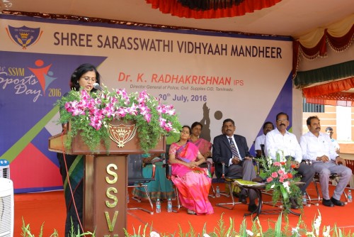 The 16th Annual Sports Day was celebrated on 30 July, 2016. Dr. K. Radhakrishnan, I.P.S., Director General of Police, Civil Supplies CID, Tamil Nadu was the Chief Guest. Mrs. A. Suguna Devi, Senior Principal welcomed the gathering. The Chief Guest accepted the guard of honour from the saluting dais. Our National Flag, Sports Flag and School Flag were unfurled by the Chief Guest and the other dignitaries. The Managing Trustee and the Trustee felicitated the Chief Guest. Mrs. A. Malini presented the Annual Report. The Chief Guest then declared the Sports Meet Open. The heats of Inter House Athletics were conducted. The Triassic House bagged the overall championship trophy. The Chief Guest then distributed the awards and certificates to the winners.